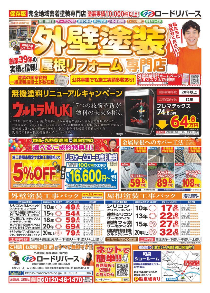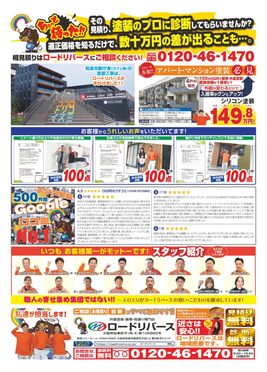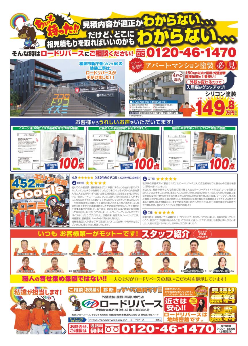 大阪府和泉市の外壁塗装&屋根塗装専門店 ロードリバース 〒594-0066 大阪府和泉市桑原町280-2第6泉洋ビル1F
