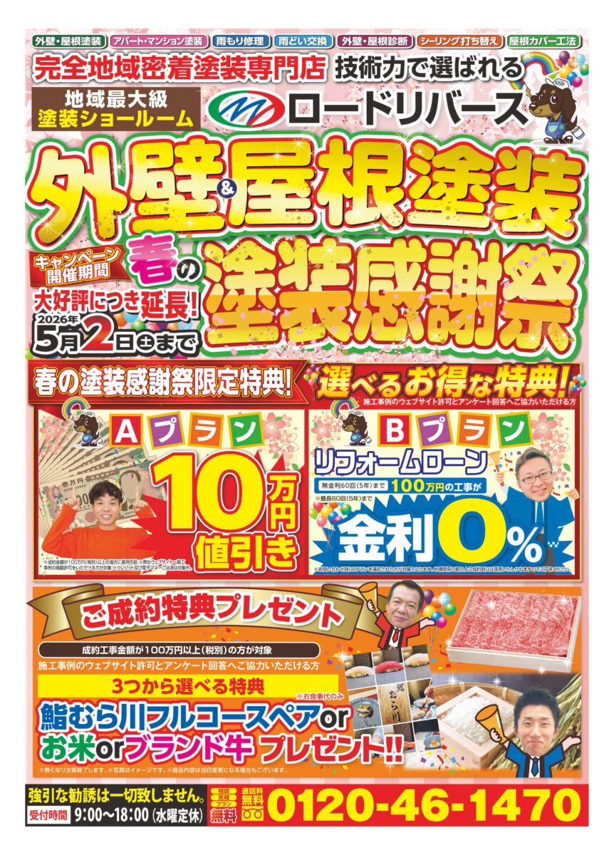 この度は、大阪府和泉市、泉大津市、堺市南区の外壁塗装・屋根専門店ロードリバースのホームページをご覧いただき、誠にありがとうございます。