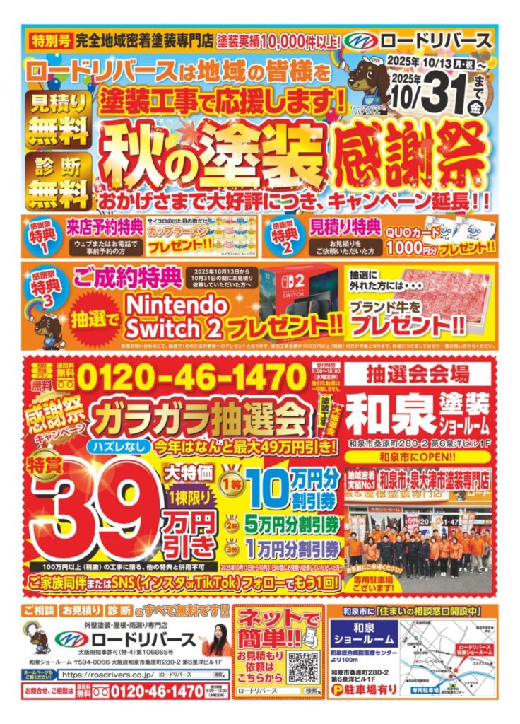 和泉市・泉大津市の外壁塗装・屋根塗装工事のロードリバースです(^^♪