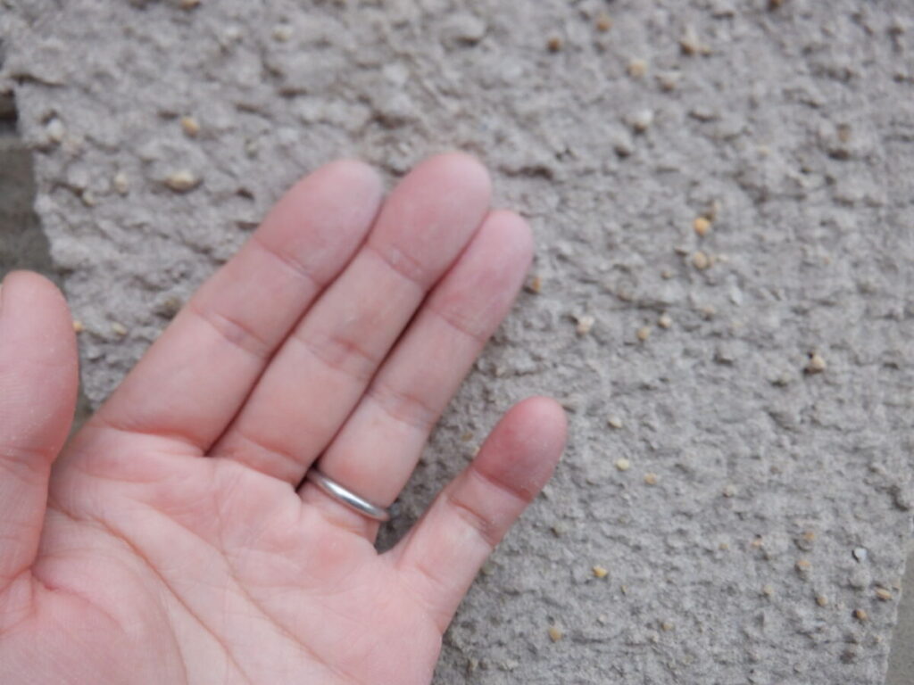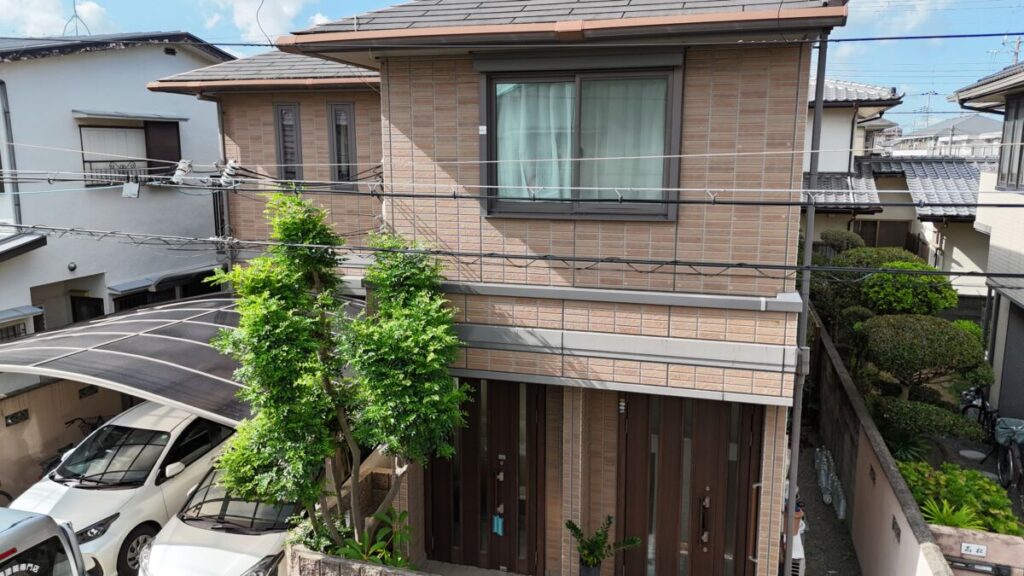 築15年程度を迎えたお住まいで、外壁にはチョーキング(白い粉が手につく現象)が見られました。