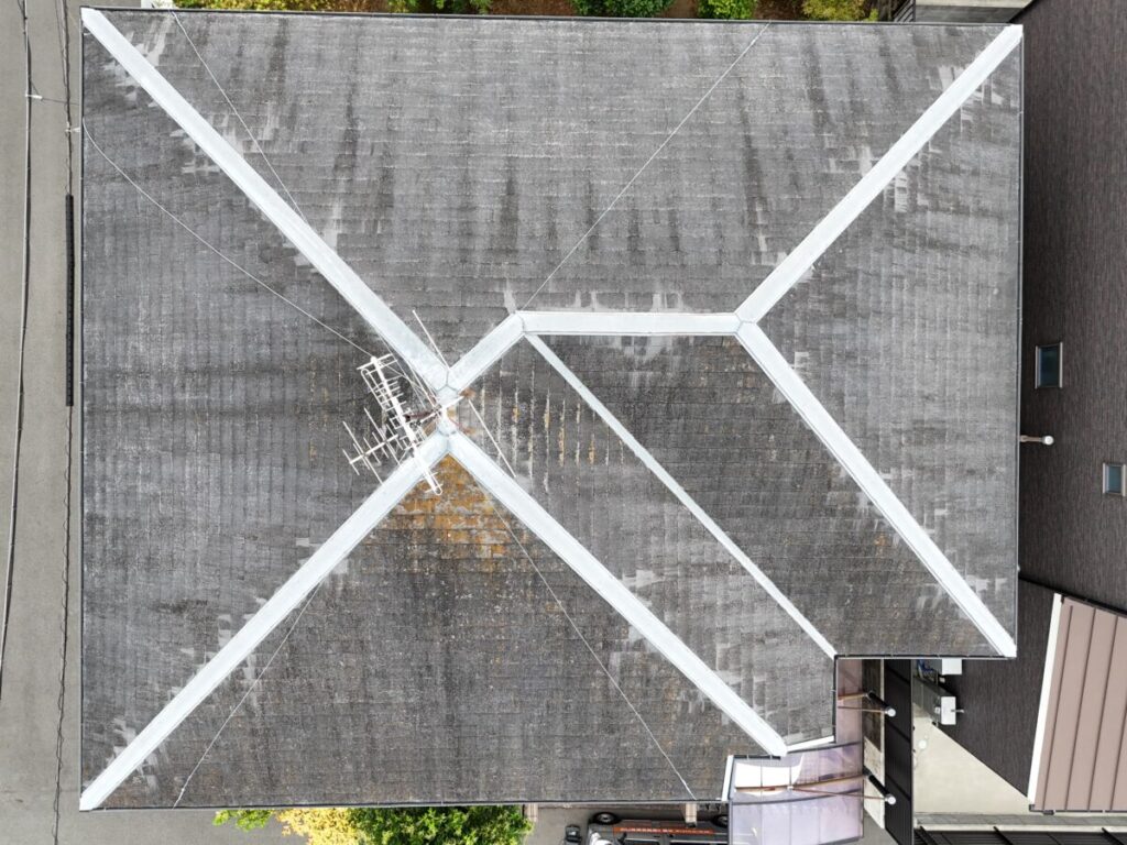 屋根は、アンテナからの錆や鳥糞の影響から、劣化が加速している状態でした。