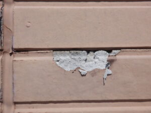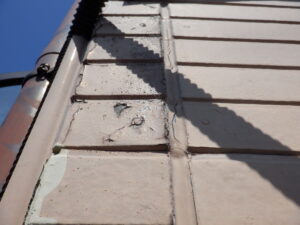 外壁は、欠けている部分が目立ち、コーキング部分の劣化も見られました。