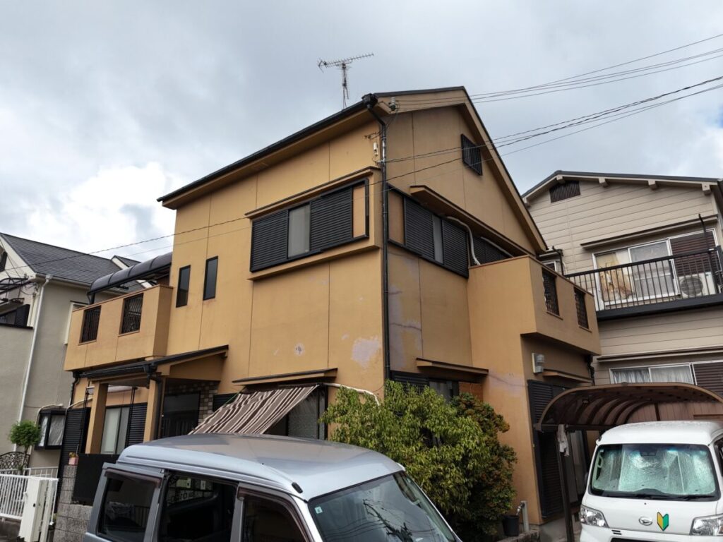 外壁は、ひび割れや色あせが進んでいる状態でした。