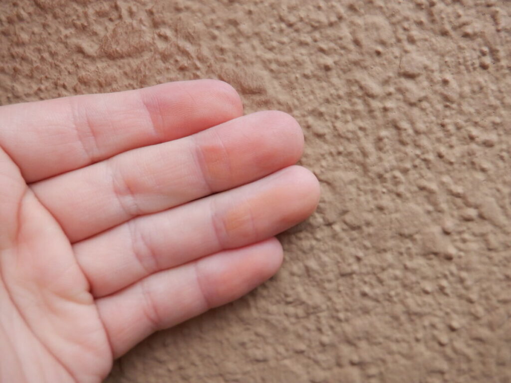 写真のように外壁を手で触ると粉が付着する状態は、
