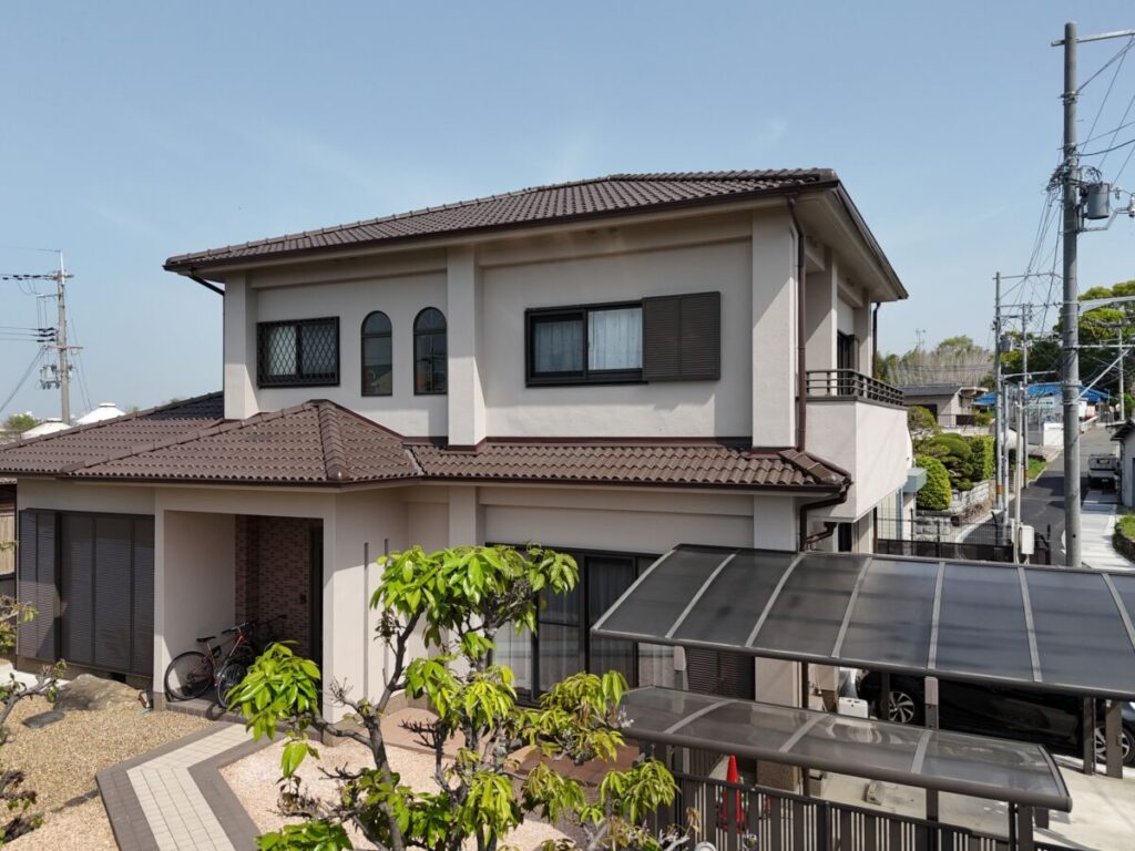 ベージュと瓦屋根の組み合わせは非常に相性が良いです。