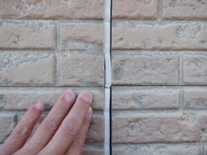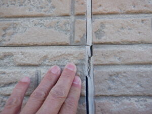 写真のように、外壁の目地部分に充填されているコーキング材がひび割れや