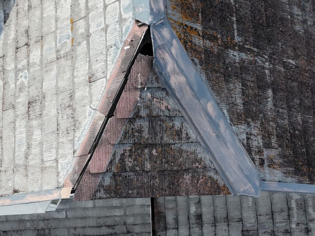 今回の現場では、写真の通り屋根材の劣化が著しく、部分的な破損や隙間が発生しており、