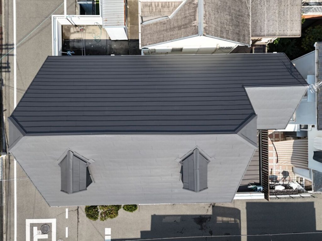 今回の施工では、耐久性と軽量性に優れた金属屋根材「スーパーガルテクト」を採用しました。