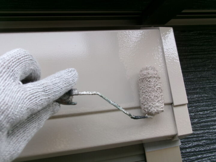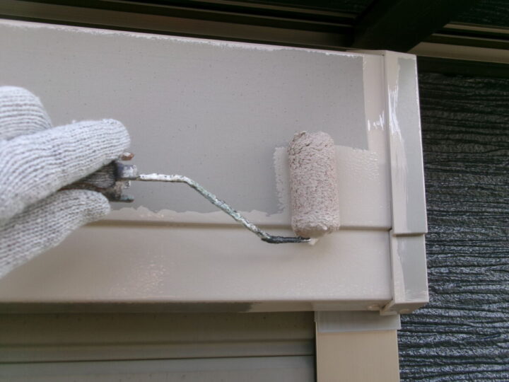 上塗り(1回目)です。こちらも細かい場所は、刷毛で塗ります。大きな面積は、ローラーで塗っていきます。