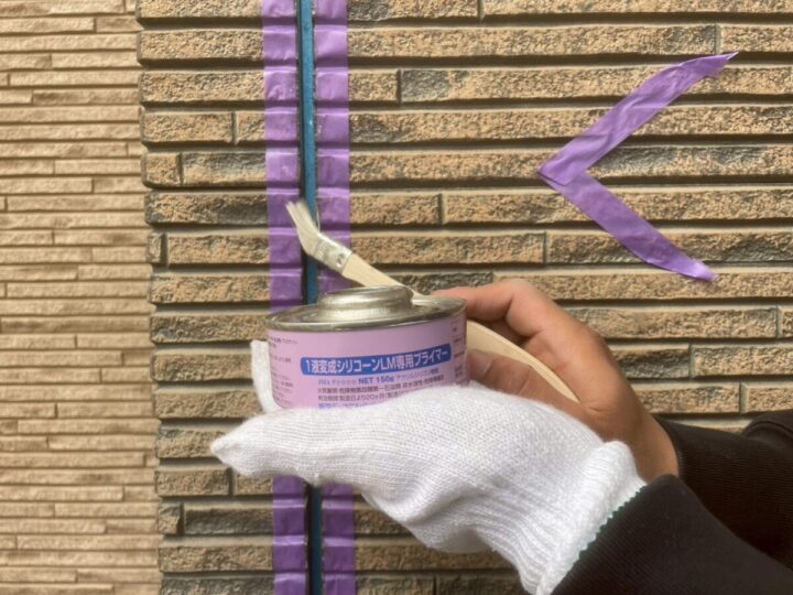 下塗りです。細かい場所は、刷毛で塗っていきます。面積の大きい場所は、ローラーで塗っていきます。
