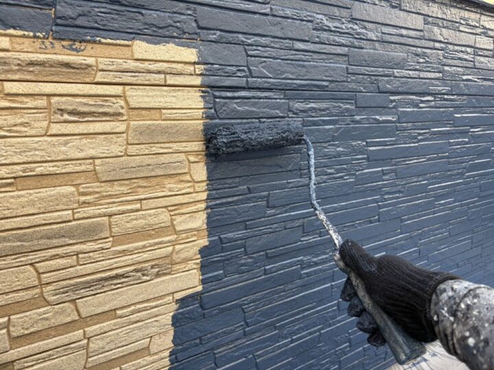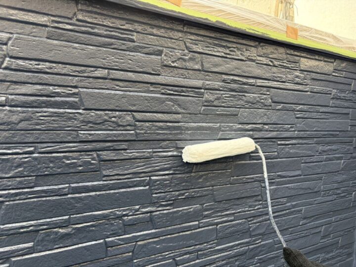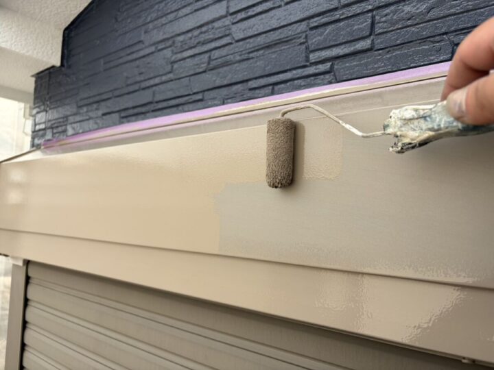 上塗り(1回目)です。こちらも細かい場所は、刷毛で塗ります。大きな面積は、ローラーで塗っていきます。