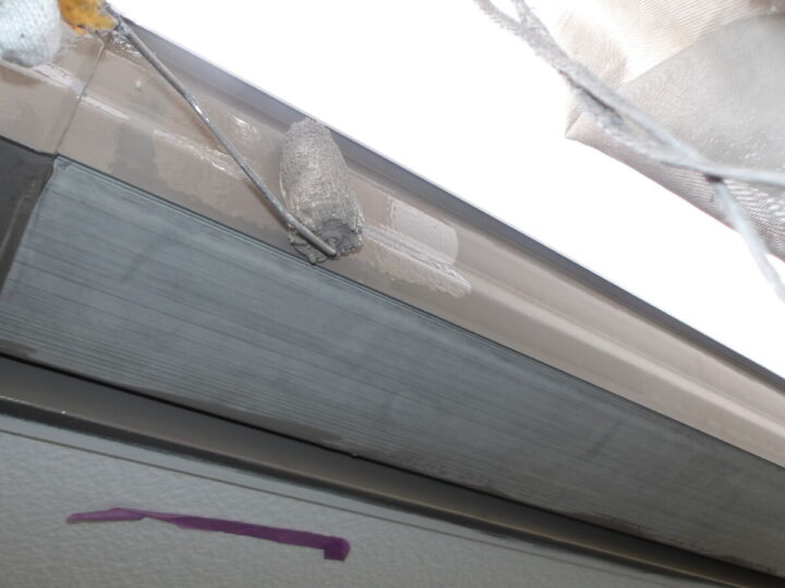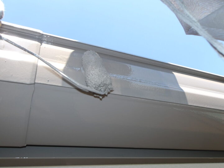 上塗り(1回目)です。こちらも細かい場所は、刷毛で塗ります。大きな面積は、ローラーで塗っていきます。