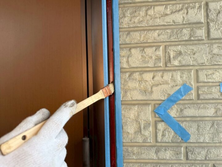下塗りです。細かい場所は、刷毛で塗っていきます。面積の大きい場所は、ローラーで塗っていきます。
